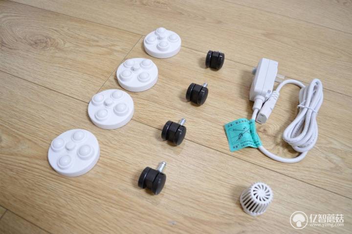 新开箱的足浴桶需要进行简单的组装,按摩球,脚轮,电源适配器等配件使用了专门的纸盒进行存放。
