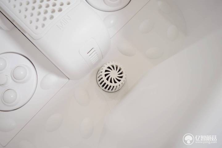 再将按摩球对准底盘上的凹槽按压下去,完成按摩球的安装。可以看到足浴桶底部除了16颗可以旋转的按摩球之外,还有很多针对足底穴位的凸起,在按摩时可以带来更丰富的体感。
