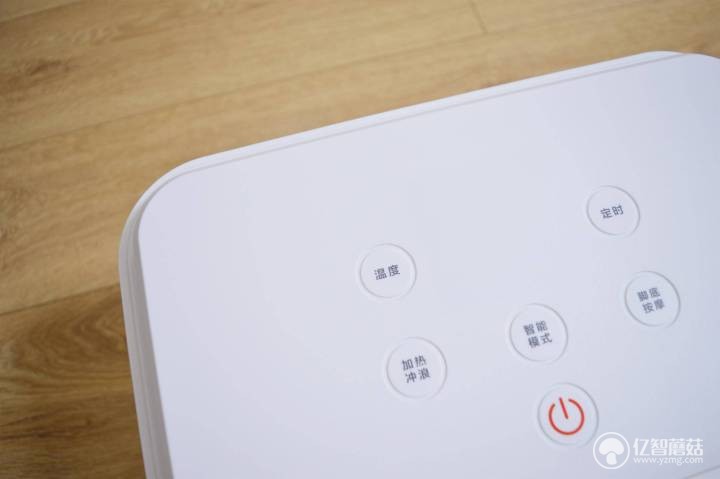 足浴盆顶部的按键占比很大,上面的文字也比较醒目,触摸式的按键具有更好防水效果的同时,也便于后期的清洁。