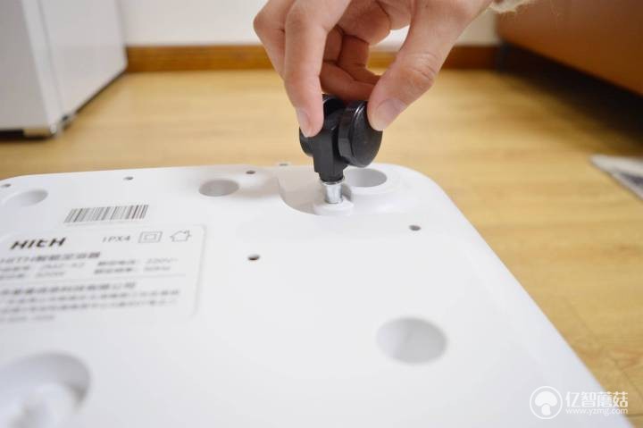 配件的安装过程十分简单,首先将四个底轮依次插入到底座上的孔洞中,注意插入时需要将底轮的连接杆与底座垂直插入,这样会比较省力。