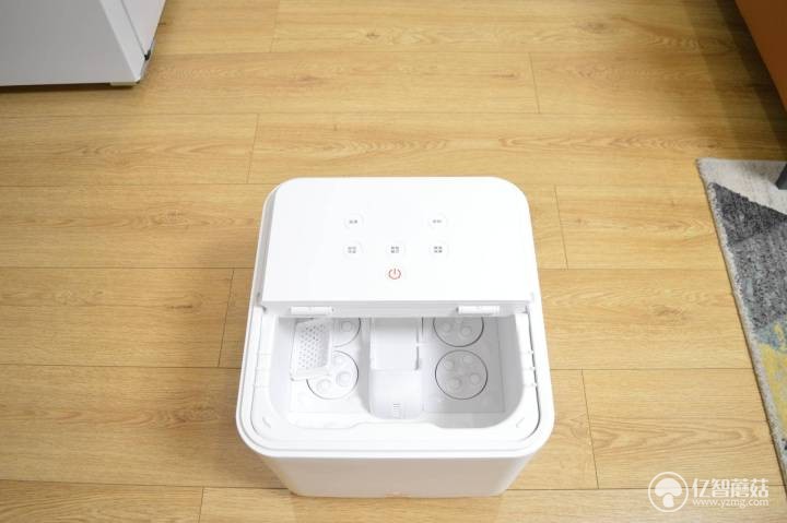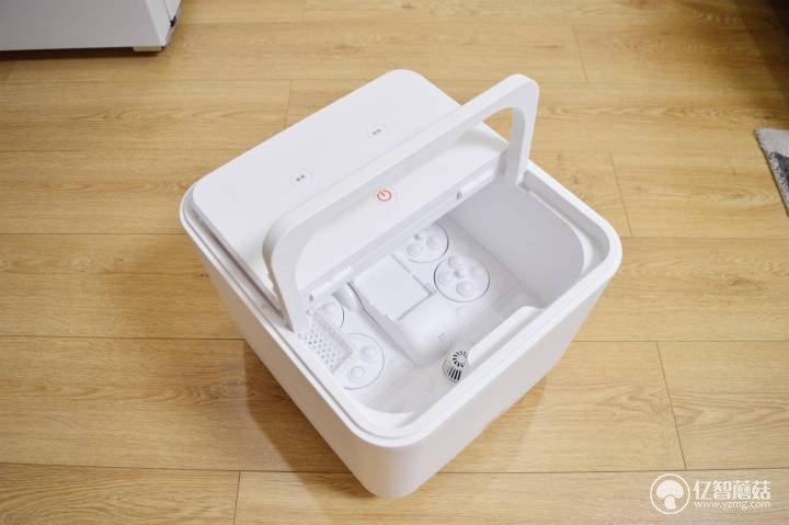 顶部翻盖使用了两段式的折叠设计,泡脚过程中如果需要加水,将翻盖完全直立起即可,操作过程比较流畅易上手。