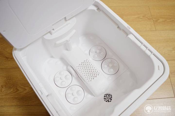 打开加热冲浪后,足浴桶中的热水通过循坏再加热,再从冲浪口不断喷涌,由于细小的喷口喷出的水花十分细腻,喷淋在小腿上酥酥麻麻的,很舒服。