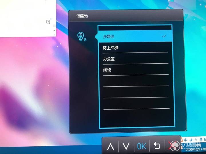 另外此次的明基EW3270U依然内置了EW系列一直在使用的爱眼功能,在爱眼菜单选项下,有多媒体、上网冲浪、办公室、阅读四种模式,应对不同的使用场景。在爱眼模式下显示器能够有效阻碍部分蓝关对于眼睛伤害,这对于每天需要盯着电脑屏幕超过8个小时的上班族来说,无疑是很有帮助的。