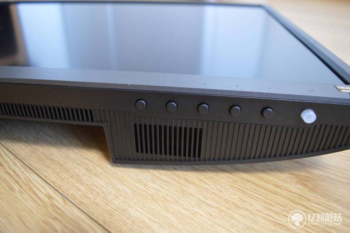 显示器右下角为OSD菜单按键,除了透明的按键为电源开关键,其他几个按键分别用来控制显示器参数调整,按键键程适中,手感有一些偏硬。