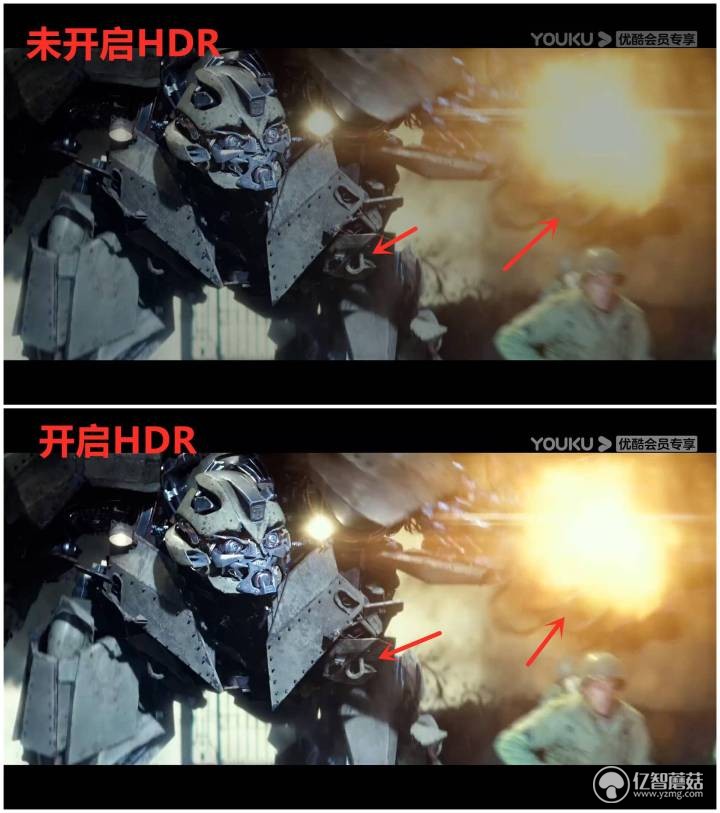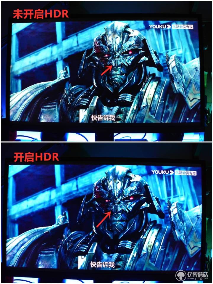 相机拍摄的照片也很明显,由于在HDR模式下,显示器对于色彩的表现要更为还原和真实,图片中的威震天身上散发出一种幽兰的金属色,更有质感,这才是制片方想要观众真正看到的画面色彩。