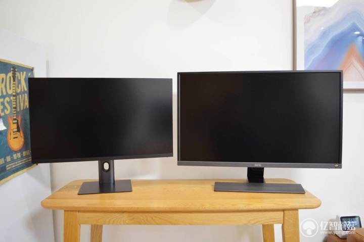 两块显示器摆放在一起,我的小书桌已经无法满足了,只能摆放在客厅里展示,跟原来26寸的显示器相比32寸的明基EW3270U确实很大!边框方面,单看还好,跟超窄边框的显示器放在一起,明基会显得有些厚重。