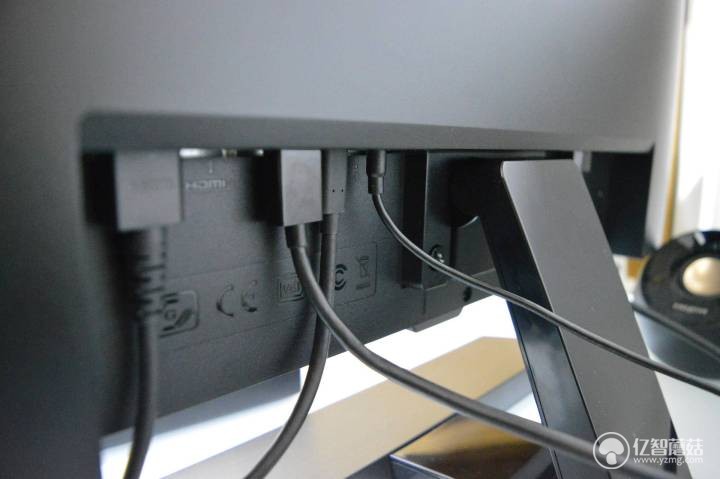 背部的布局同样简单,中间大大的logo十分醒目,略微隆起的背部显得有些厚重,中间部位可以看到VESA标准安装接口,后期可以搭配显示器支架使用。