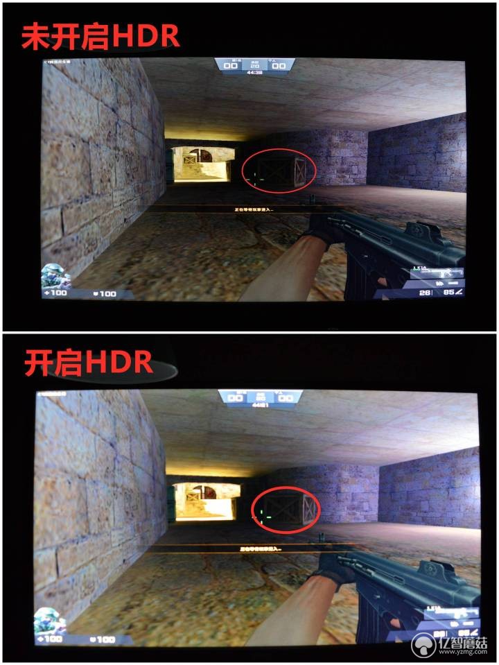 小泽之前显示器的评测文章中曾经展示过HDR功能对于FPS游戏画面的增益效果,由于对比度提高,对阴影部分的细节刻画更好,实战中也更加容易发现隐藏在阴影下的敌人,再也不用担心游戏伏地魔了。