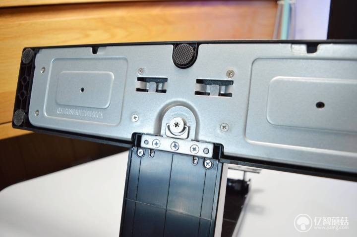 支架采用了L型支架设计,单看支架与屏幕链接位置的结构,应该在可动性上是有所限制的,这里咱们后面再提。