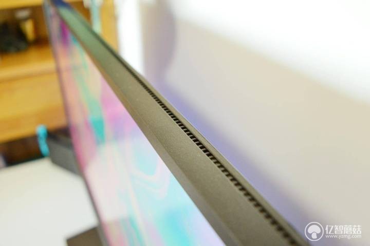 机身厚度在最薄处约为2.8公分,算不上超薄,但也不会显得十分厚重,这也是因为显示器自带音响,因此只能在厚度上有所取舍。显示器四周均匀分布着散热孔,保证机器在运行中达到更好的散热效果。