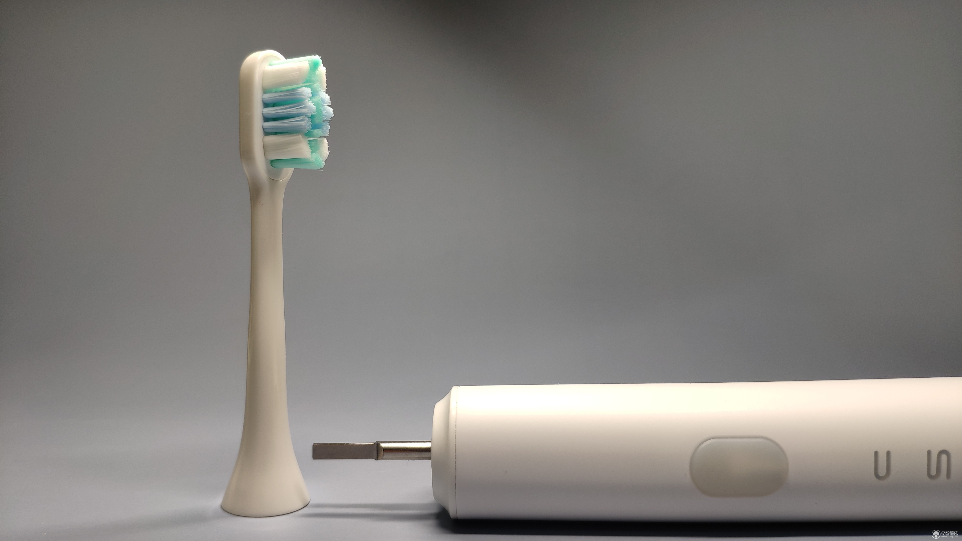 南卡Shiny电动牙刷主机与刷头采用半圆头接驳方式安装,安装和拆除都需要稍微用力禁锢住刷头,这样做也是为了在刷牙过程中造成了松动。牙刷传动端采用灵活软质塑胶配合使用,毕竟与水打交道的小玩意还是事事处处要小心。