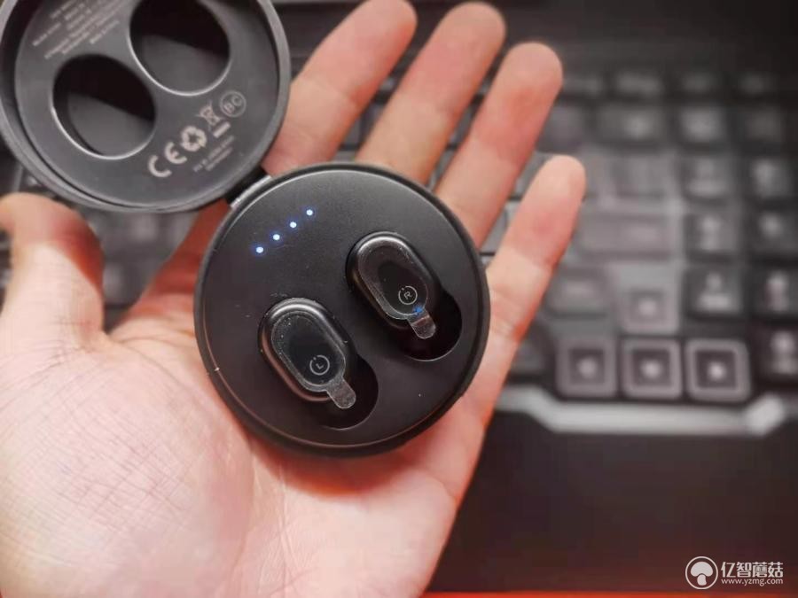 充电舱是为耳机充电的最重要设备,也就是相当于一个小电流移动电源的角色,为耳机提供电量供给。Tribit趣倍充电舱曜黑色扁圆柱形外观,整体微磨砂材质,上面板中间部位镌刻“Tribit”品牌标识,充电盒采用难度和成本较高TPE软胶与PC硬胶结合的双色注塑工艺制作,壁厚达到2mm,除了增加了产品柔感的表面、耐磨、防震程度,更增强了产品的防水性能。另外,为了进一步增强产品的防水性能,Tribit-FlyBuds1采用了精密的结构密封、防水设计、PCBA纳米涂层防水防汗材质三重保护。密封结构让水难以渗透到内部,任何天气,都能风雨无阻去挥洒汗水,也无惧汗液的腐蚀而导致变色和磨损。充电舱整体中间部位开启,上下部位结合铰链处加装便携挂绳,这就为整个耳机的便携性提供了更大可能,拎起来就走,非常方便,亦可以直接挂到钥匙包,随身背包、健身包上。。Type-C充电口位于充电舱下半部并有防水胶盖在日常使用时加以保护,对于Type-C充电的理解除了充电线插拔方便以外,在充电电流方面也能高出普通Micro-USB充电很多,以此提高日常耳机周转使用效率。