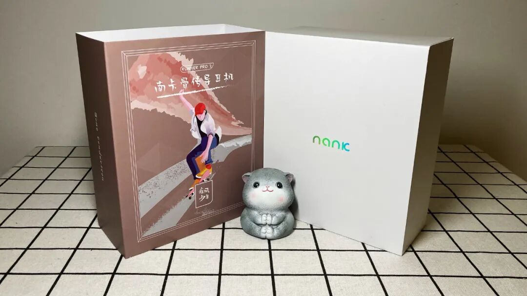 作为一款运动骨传导耳机,南卡Runner Pro2的包装与上一代大不相同,中间的运动卡通人物与底部的“疾风少年”slogan,透露出青春活力的色彩,包装整体更加符合运动时尚的设计风格。