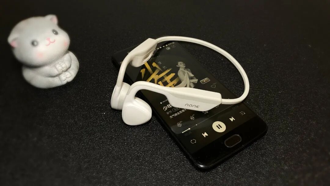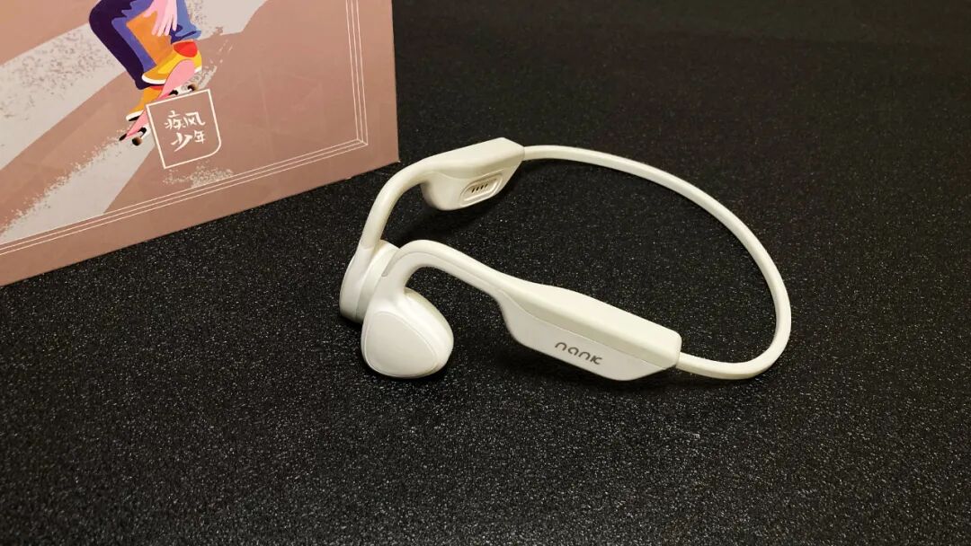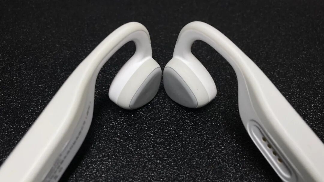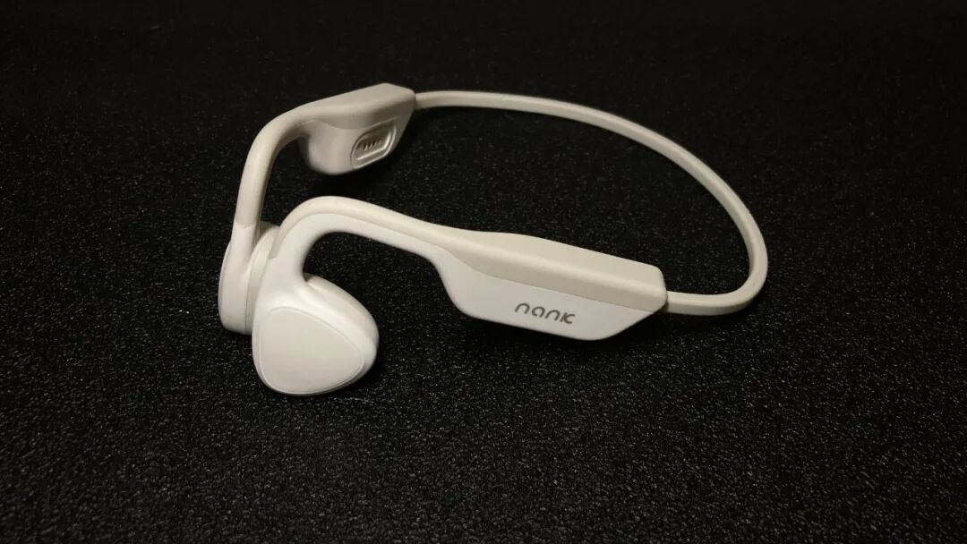 取出南卡Runner Pro2,洁白的配色与一体化的机身使得耳机整体像一块刚进而又圆润,航空级的材质使得耳机仅有28g的重量,轻盈的机身使得骨传导蓝牙耳机在佩戴时也有着不错的舒适感。南卡Runner Pro2骨传导蓝牙耳机在与皮肤接触的地方采用了亲肤的硅胶材质,通过与记忆钛金属的融合,使得耳机的框架具有一定的变化力,即便是在戴眼镜的情况下,通过微调同样能够找到最适合的佩戴角度,大大增加了在佩戴时的舒适感。