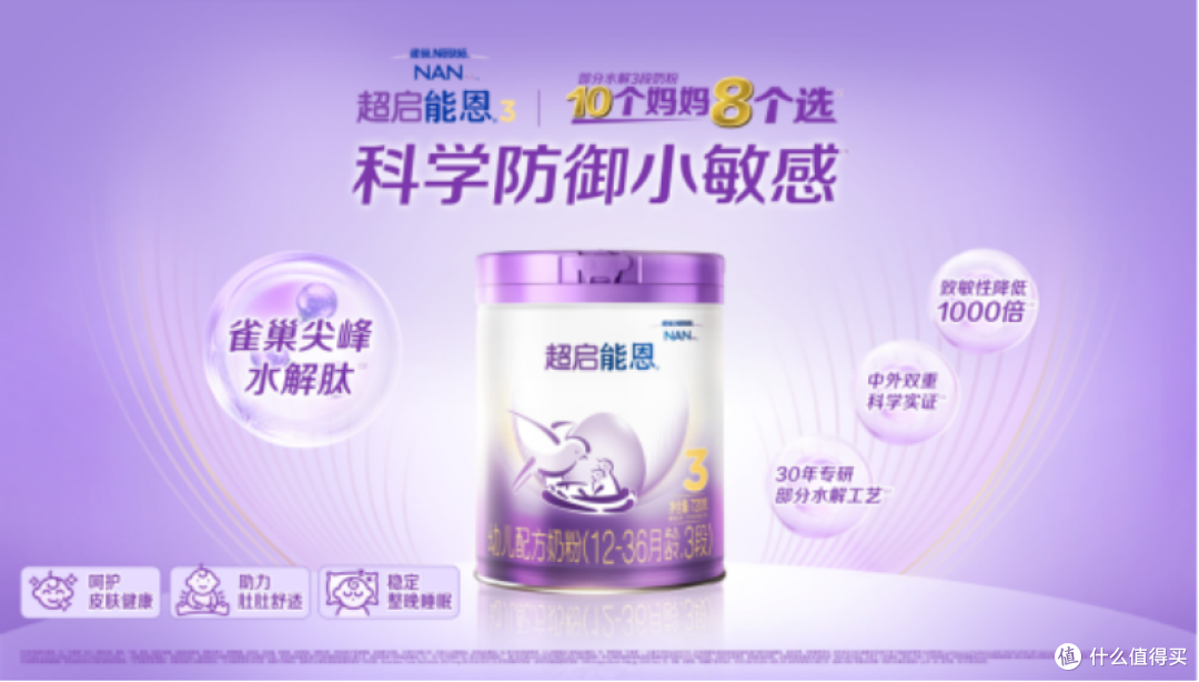 同样是适度水解奶粉,不同品牌的核心技术却存在差异。以雀巢超启能恩为例,其“瑞士尖峰水解科技”的核心优势在于: