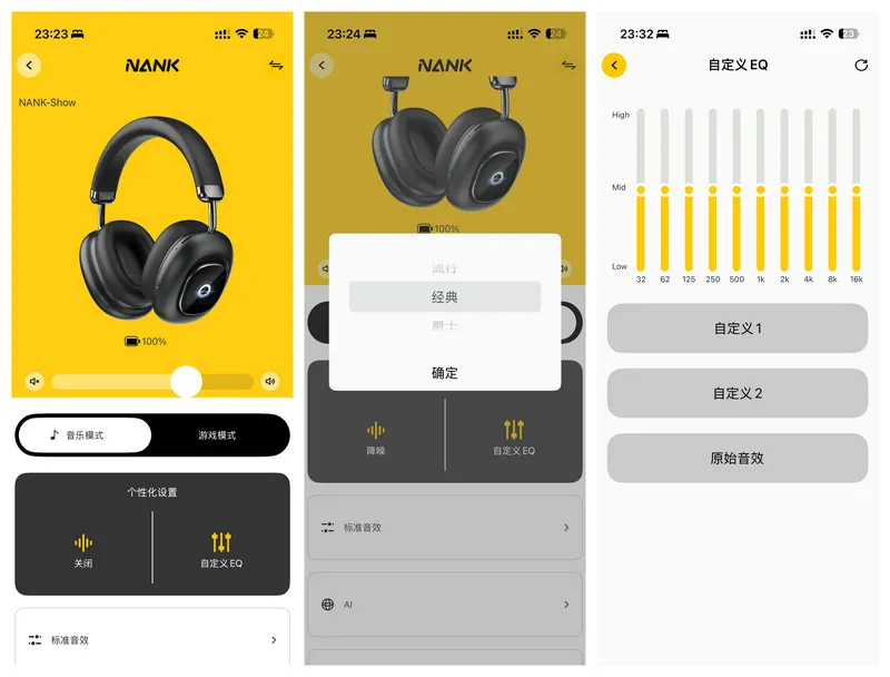 南卡SHOW在音质表达上也十分突出,40mm的大动圈单元保证了低频的力度,搭载自研的40mm TiCore钛核复合振膜+CCAW超导音圈,配合Hollowave 2.0环域声场引擎与HiFi DSP功放芯片,超强的解析力,营造出 360 立体空间感。低频下潜够深、弹性够足,鼓点扎实不散,流行、电音氛围感拉满;中频人声通透饱满、位置靠前,民谣、流行乐仿佛歌手在耳边吟唱;高频明亮顺滑,延伸自然,器乐细节清晰。整体声场开阔不闷耳,不管是听音乐、看电影、玩游戏,都能营造出身临其境的沉浸感,音质还原度媲美专业HiFi设备。